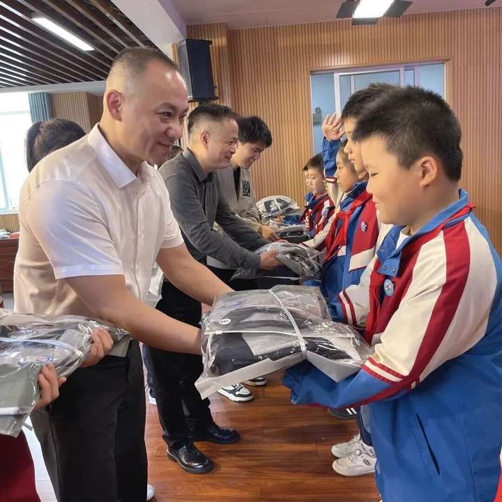 随后,与会嘉宾将一套套崭新的校服分发到学生代表手中,孩子们双手接过这份温暖的礼物,脸上绽放出灿烂如花的笑容,报告厅内瞬间被幸福与快乐填满。